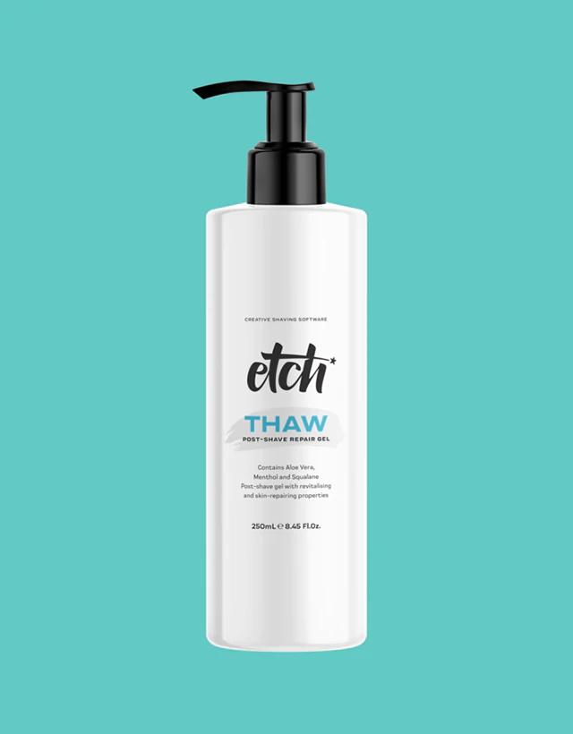Etch® THAW post-shave gel is an effective formula to post-shave repair and cooling. The gel is a nourishing and skin-conditioning solution to soothe razor burn and nicks to leave your skin refreshed and repaired. The post-shave gel provides revitalising and skin-repairing relief with supercooling properties for those who regularly experience razor burn in sensitive shaving areas, i.e. the neckline.
