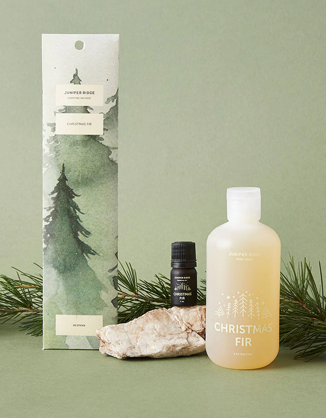 This collection of Christmas Fir goodness includes 1 each of Christmas Fir body wash, essential oil and incense pack.