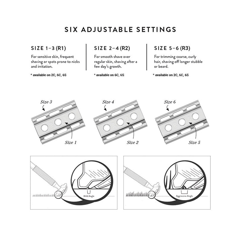 Improve your skin, eliminate plastic waste and save a fortune on shaving with the Rockwell 6C Razor. Rockwell's innovative adjustable settings let you change the blade exposure for a truly personalized experience, so you get a close, comfortable shave - every time. Ditch overpriced plastic razors and subscription shave clubs for good and transform your shave into an experience you can look forward to. The Rockwell 6C eliminates bumps, razor burn, nicks and irritation - so you get the premium experience you deserve.