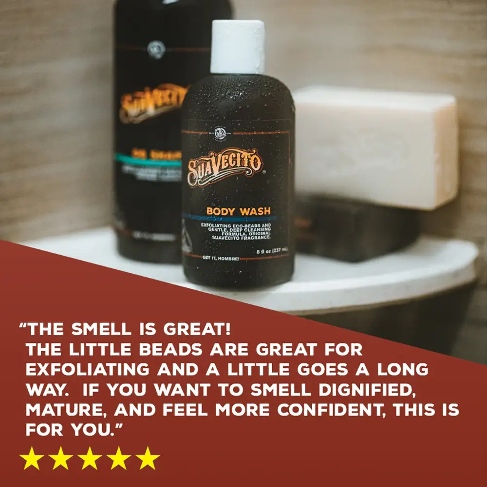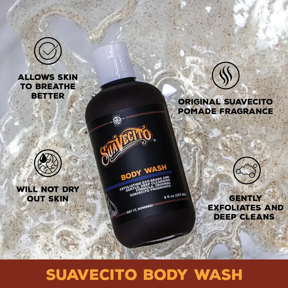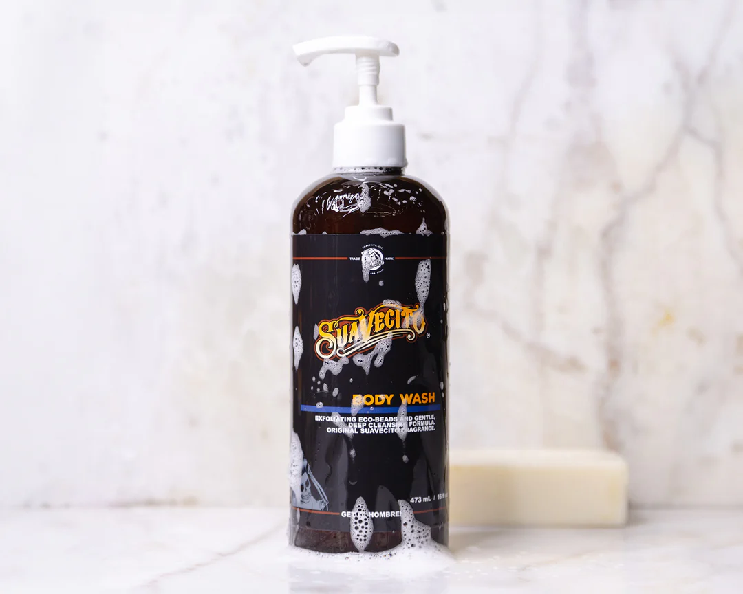 Suavecito Men's Body Wash is formulated to deliver a superior clean without drying out your skin. Whether you're starting your day or unwinding after a long one, this deep-cleansing body wash helps you feel fresh, energized, and ready to tackle anything. Infused with eco-beads, it gently exfoliates, removing dirt, sweat, and grime, while providing a rich lather for a luxurious shower experience.